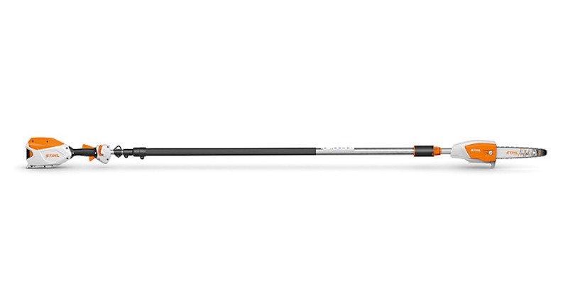Silná akumulátorová vyvětvovací pila. Tichá a s nízkými vibracemi. Pro profesionální uživatele při ošetřování stromů, v ovocnářství a v obcích. K vyvětvování stromů, odstraňování odumřelého dřeva a polámaných stromů a větví po bouřce a také pro řez ovocných stromů. Pilový řetěz ¼“-PM3, lehčí a kompaktnější řezná část s robustním hákem na přidržování větví pro snadné odstranění volného pořezaného materiálu ze stromu. Zvlášť tuhá profesionální teleskopická tyč se systémem rychlého přestavení pro velmi přesné nasazení a přesný řez. Celková délka 270 – 390 cm.