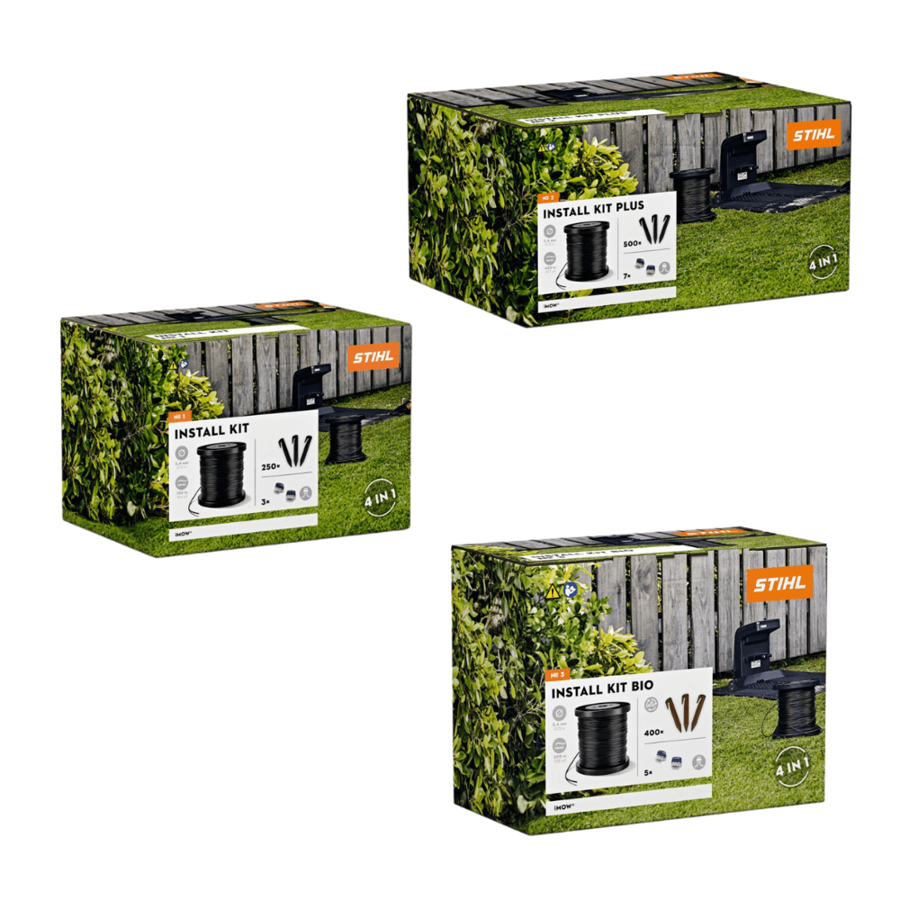 Instalační KITY STIHL iMOW® představují praktické řešení pro přípravu vaší zahrady na provoz robotické sekačky. Pomocí těchto sad můžete snadno a přesně vymezit pracovní plochu, po které se bude robotická sekačka pohybovat. Sady obsahují vše potřebné pro instalaci – od obvodového drátu Ø 3,4 mm až po upevňovací kolíky a konektory – a jsou navrženy tak, aby odpovídaly různým velikostem trávníků a individuálním potřebám uživatelů.